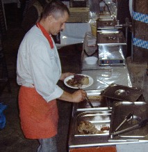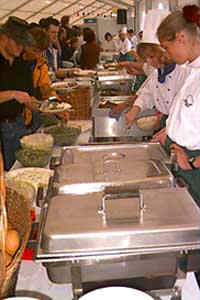 Hilfspersonal zum Ausgeben der Portionen sowie für das Kassieren